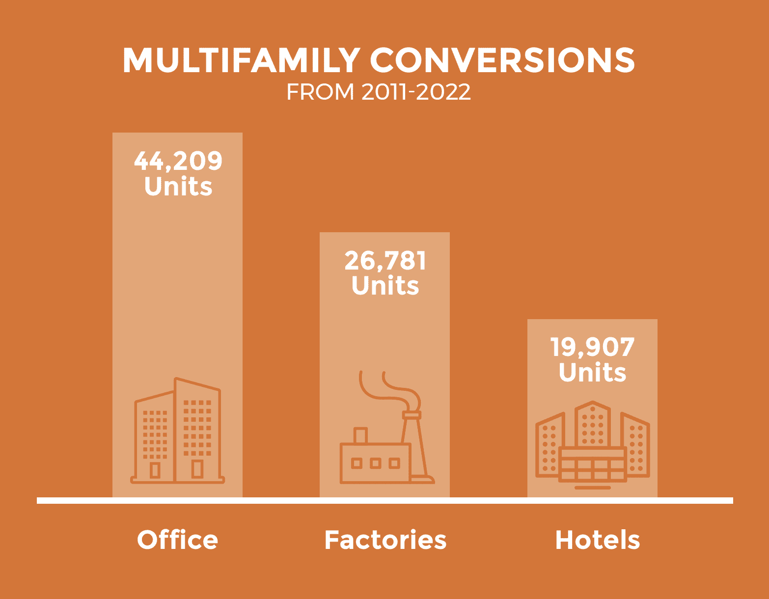 - Office buildings accounted for the most apartment conversions– 44,209 units