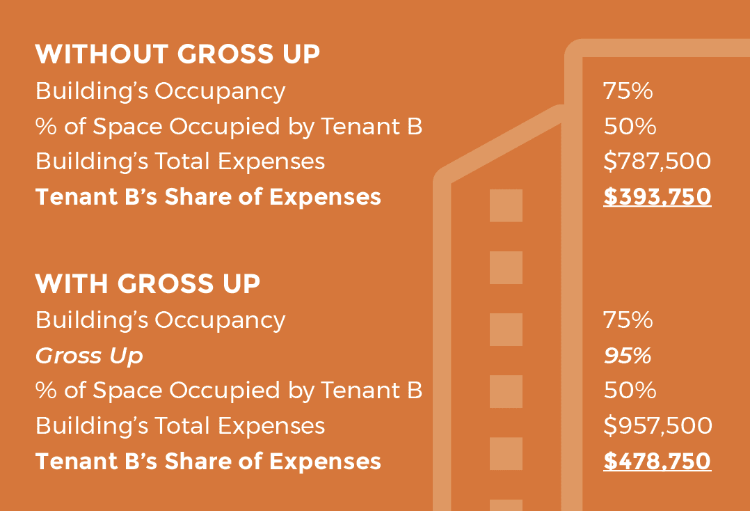 - As you can see, Grossing Up variable expenses provides cost certainty to the landlord regardless of the building’s actual occupancy rate because the building’s tenants are the ones benefitting from the support and services that are generated by the variable operating expenses, not the landlord. Thus, it’s only fair that the tenants pay for most of the cost.
