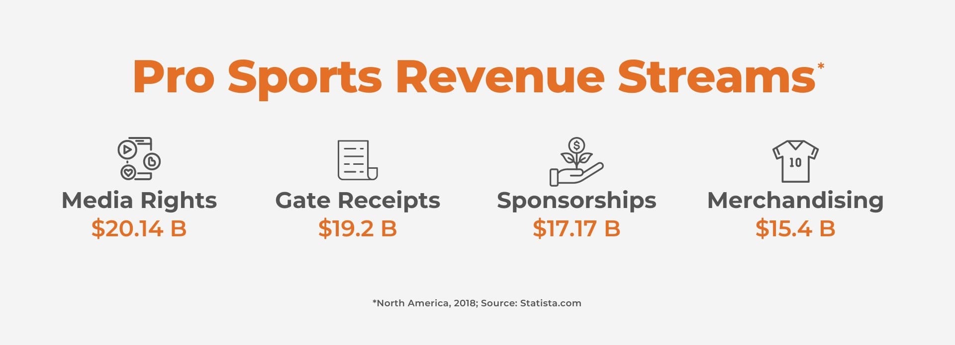 - Media rights, which includes TV, radio and internet broadcasts, is professional sports’ largest revenue stream, generating $20.14 billion for North American teams in 201821.
